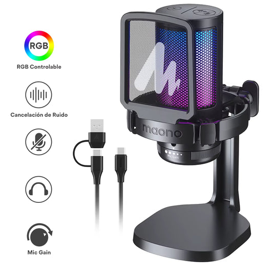 DGM20 Gaming Microphone,Usb Microphone Condenser Mic RGB Gaming Mic with Noise Reduction Software,Mic Gain,One Key Mute