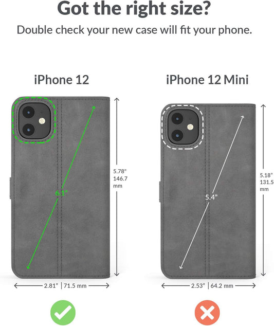 Leather Wallet for Iphone 12 || Genuine Leather Wallet Phone Case || Real Leather with Viewing Stand & 3 Card Holder || Flip Folio Cover with Card Slot (Grey)