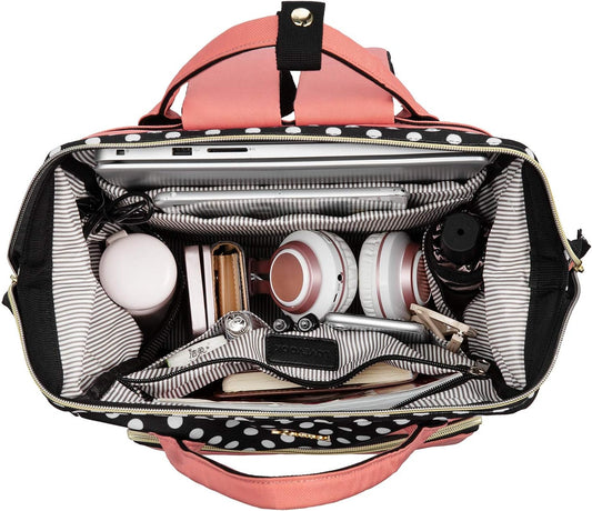 Laptop Backpack for Women Work Laptop Bag Stylish Teacher Backpack Business Computer Bags College Laptop Rucksack, Polka-Pink